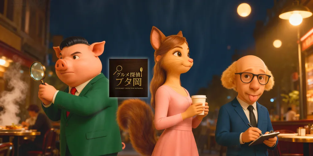 グルメ探偵・ブタ岡と助手のクリ子は、料理を巡る謎を追う探偵コンビ。